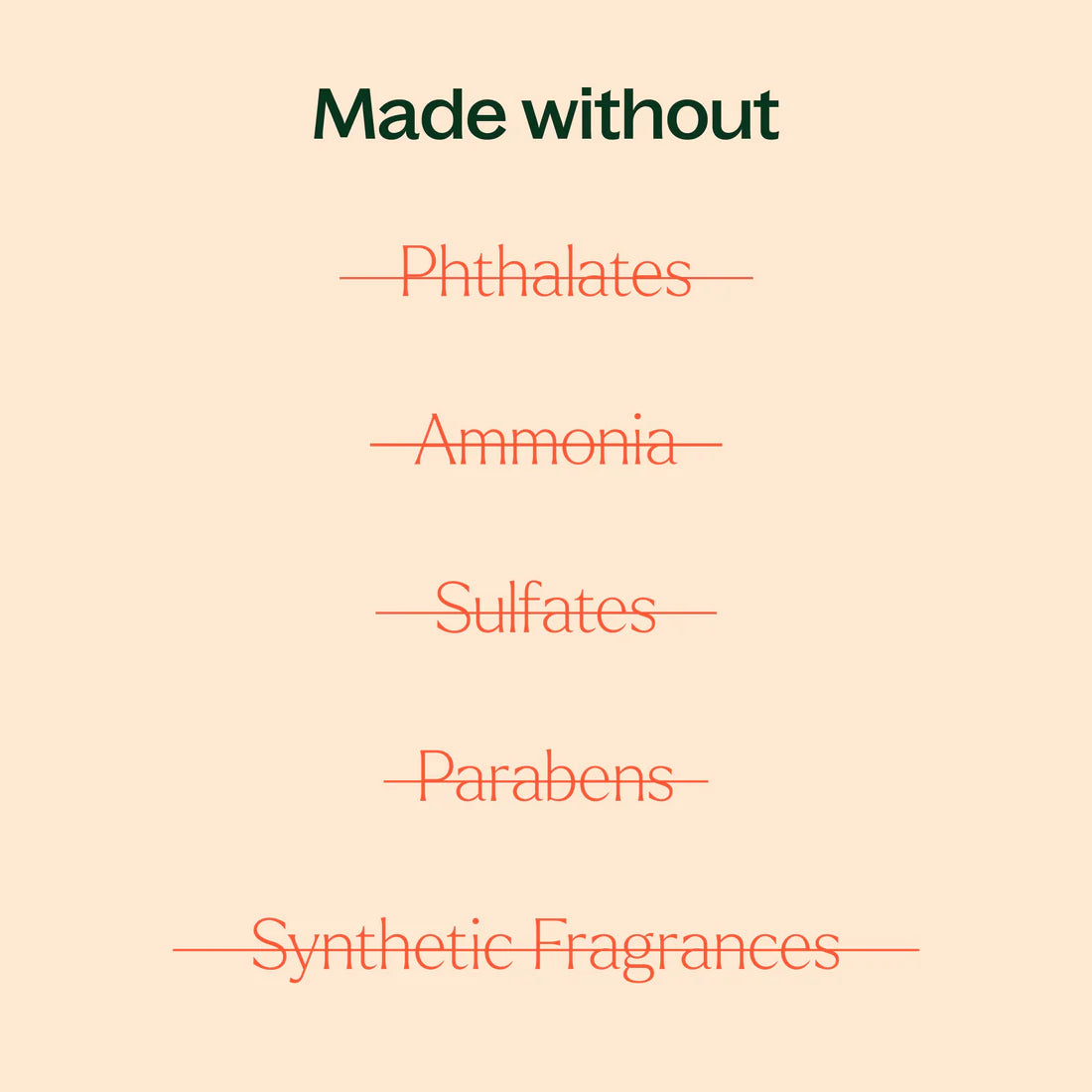 本產品皆無添加有害化學物,不含麩質、酒精、人工香精、色素、Parabens防腐劑、鄰苯二甲酸鹽、矽酮、甲醛、礦物油、PEGs、SLS/SLES,並堅持零殘忍理念,不進行動物測試。