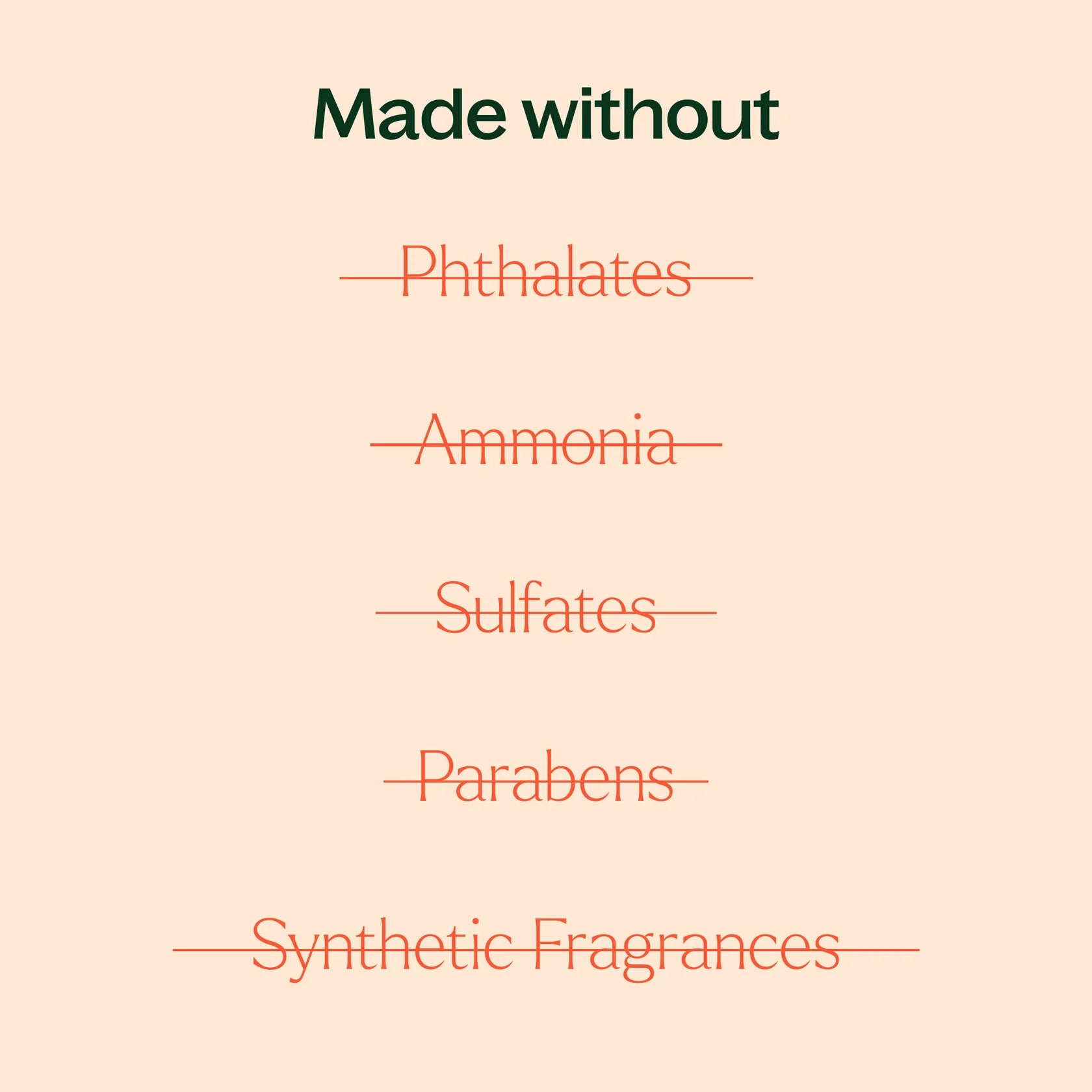 本產品皆無添加有害化學物,不含麩質、酒精、人工香精、色素、Parabens防腐劑、鄰苯二甲酸鹽、矽酮、甲醛、礦物油、PEGs、SLS/SLES,並堅持零殘忍理念,不進行動物測試。