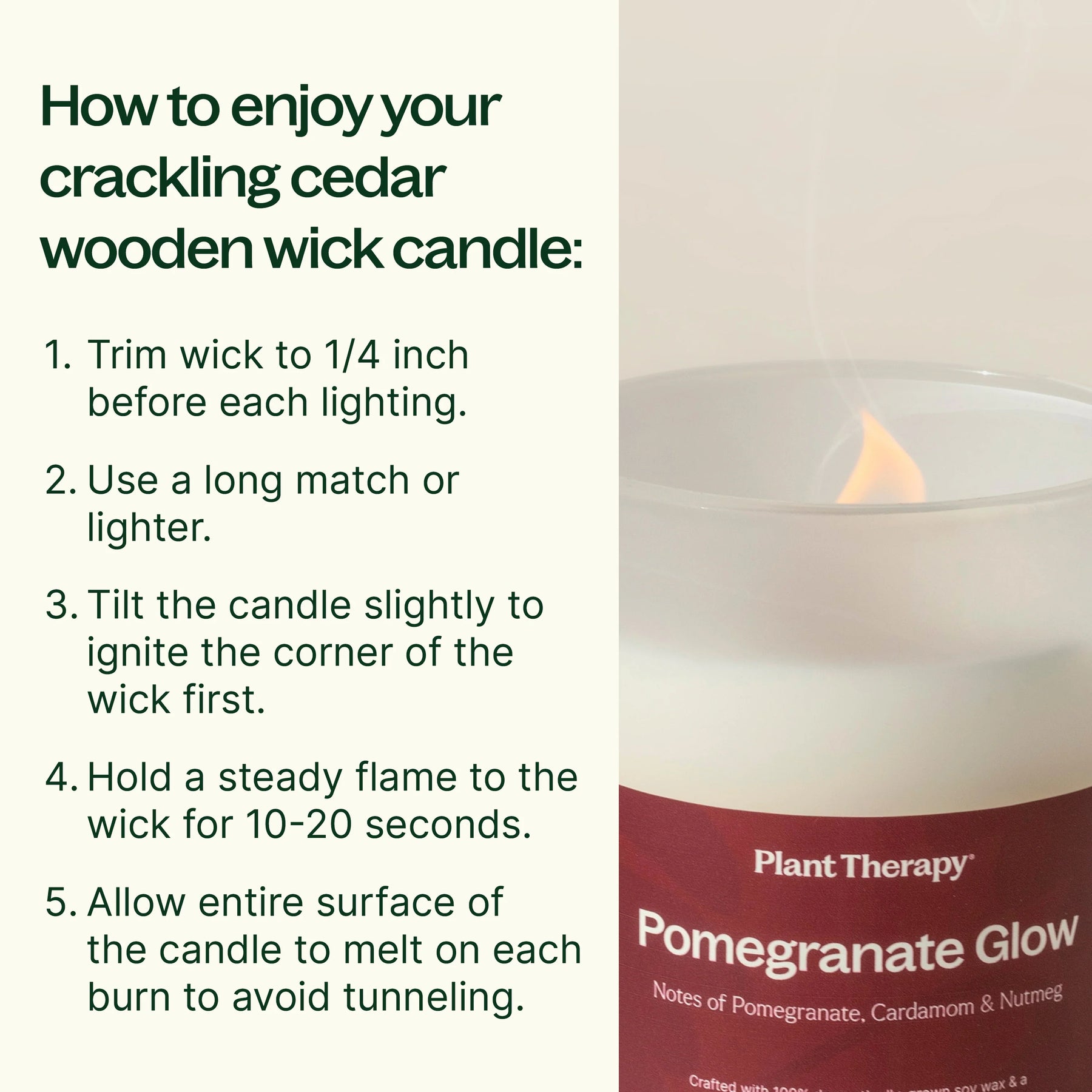 此蠟燭採用雪松木燭芯,其點燃方式與棉質燭芯略有不同。請遵循以下要訣,以確保燃燒順暢均勻。