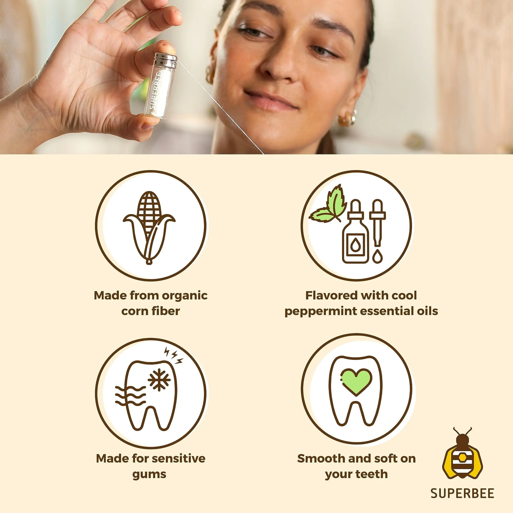準備好綻放您最燦爛明亮的笑容!我們的100%可生物分解純素牙線,選用有機非基改玉米纖維製成,能舒適滑入齒縫,讓牙齒感受清新潔淨與自然健康。