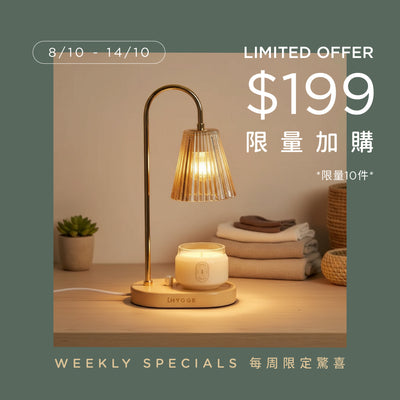 10 月每週三(8、15、22、29日)推出不同快閃活動,敬請期待!🎊10月8-14日限定,凡購物即可以 HK$199 閃購價加購 iHYGGE 融蠟燈或香薰機 (每款限量 10 件,售完即止) !