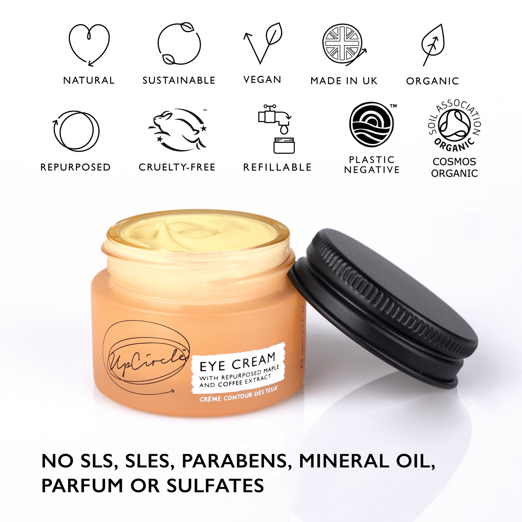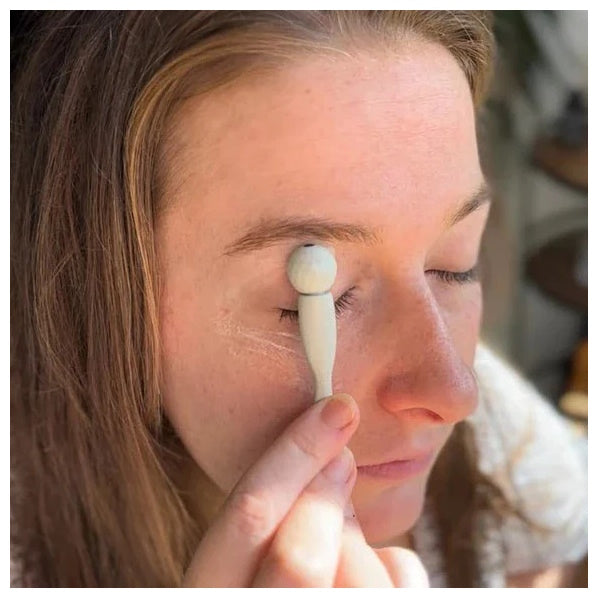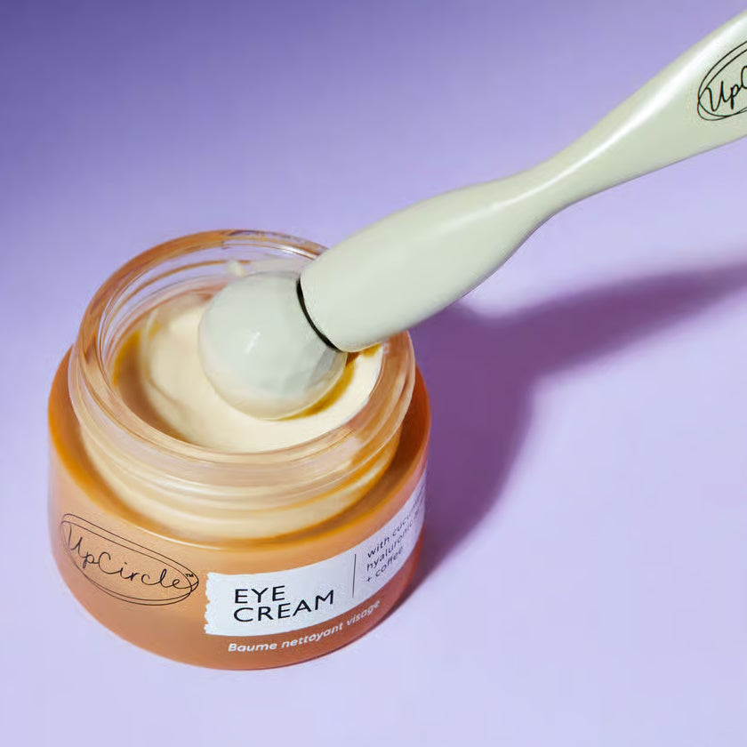使用方法使用 UpCircle Beauty 眼霜時,將產品塗抹在球的末端,建議配合滾輪按摩棒,輕輕滾動於眼部下方的肌膚上,或直接用無名指輕輕按壓眼部四周,直至完全吸收。
