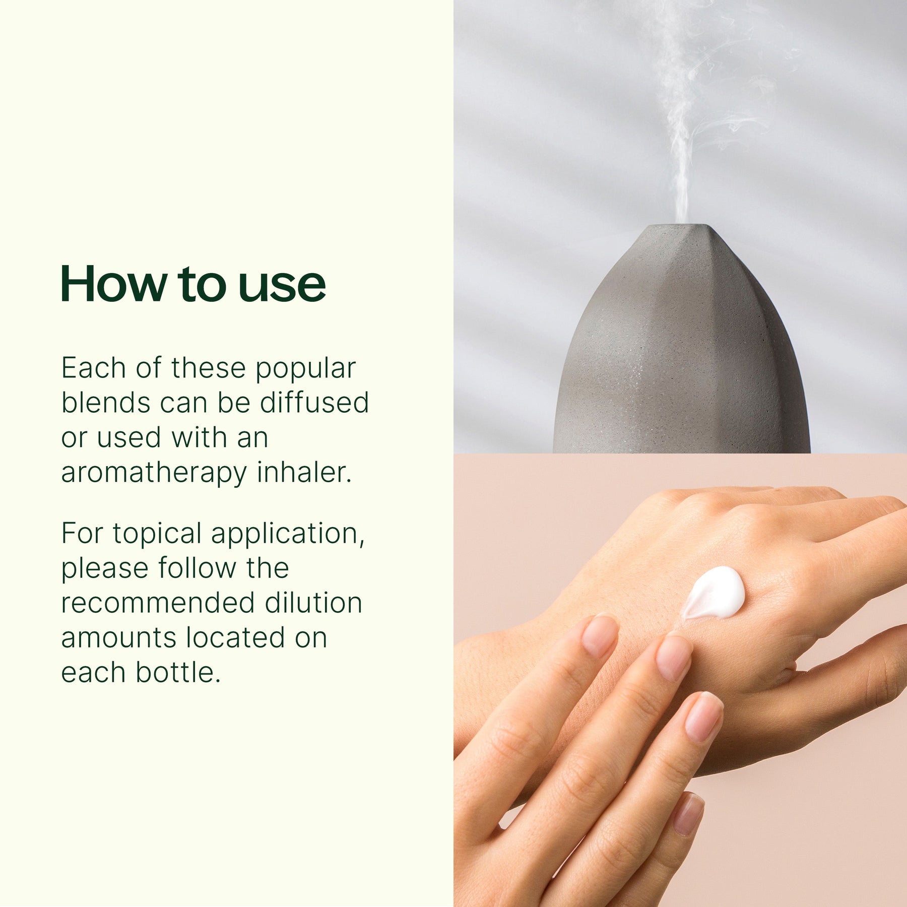 Support your well-being naturally with our most popular blends! Simply diffuse or dilute and apply topically to enjoy the benefits.