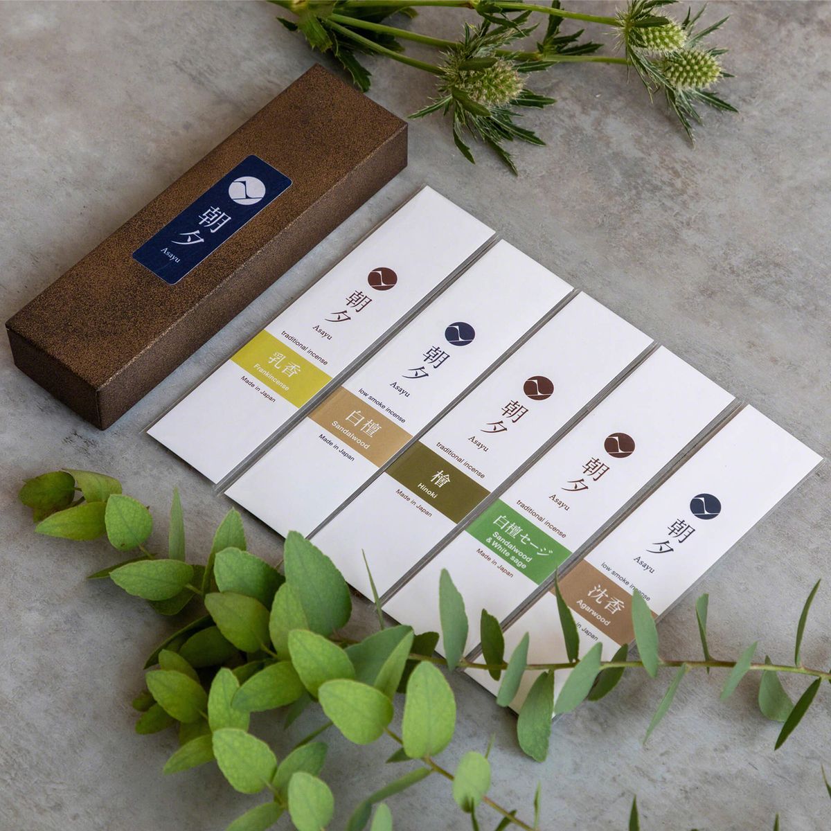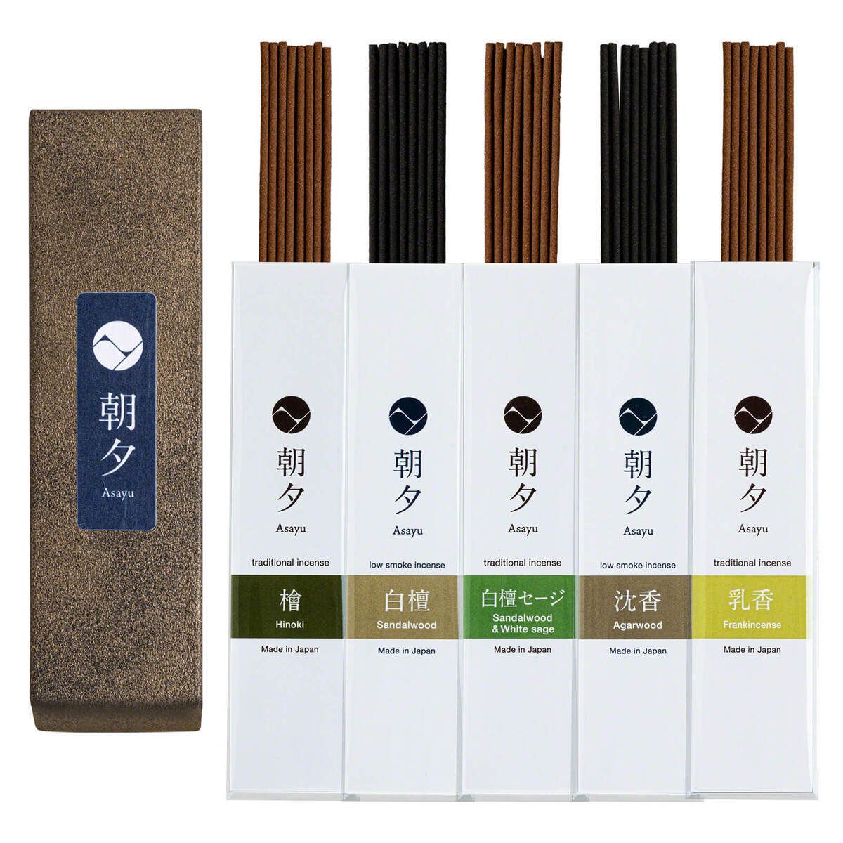 【Pre-order】Asayu Japan|【Natural Incense Gift Set】5 Scents + Mini Zen Ceramic Holder