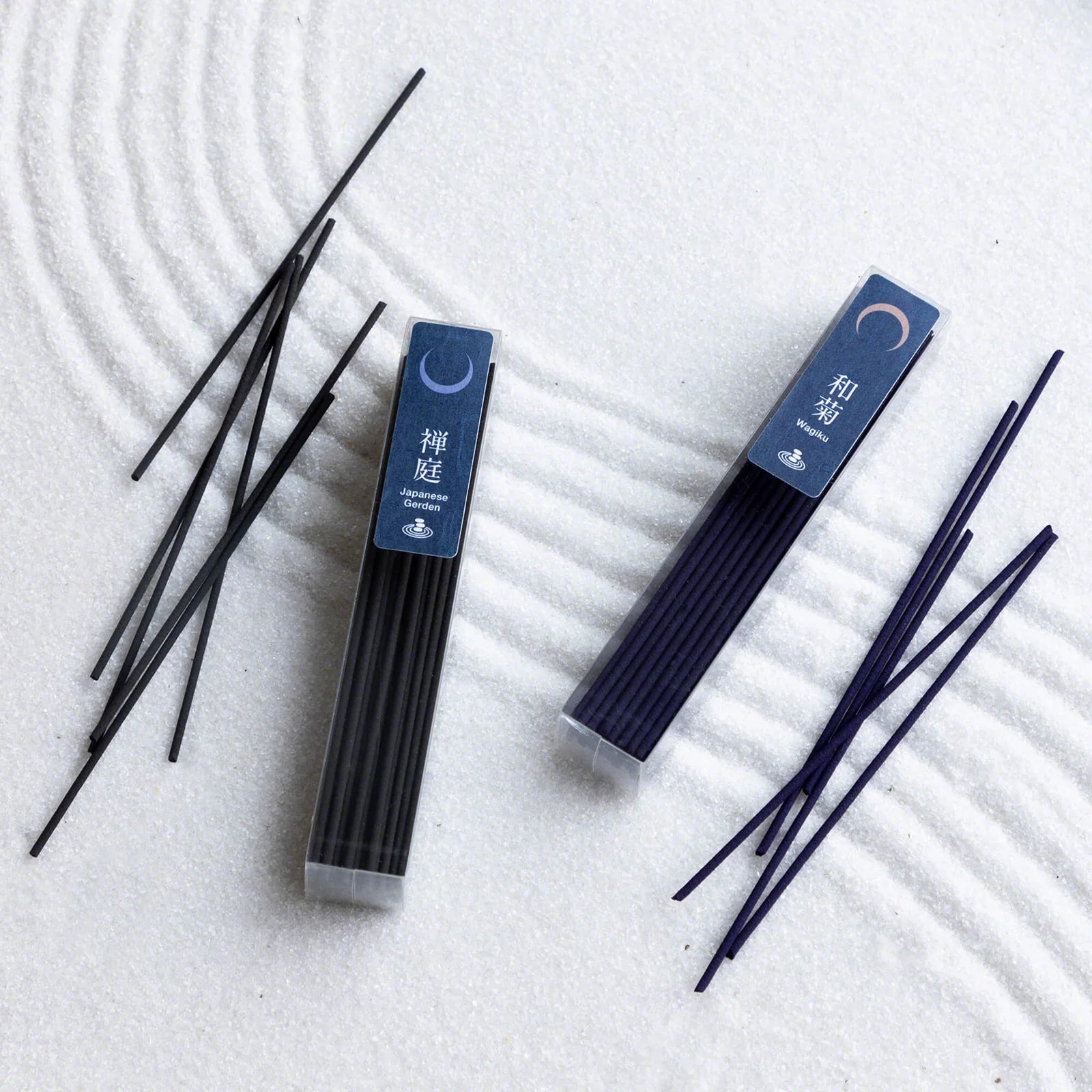 Our Japanese incense sticks produce less smoke than traditional sticks so you can better enjoy the scent without the irritation other incense may cause. This set includes a Matcha Green Tea scented incense for morning refreshment and Sakura Cherry Blossom blend for evening meditation.