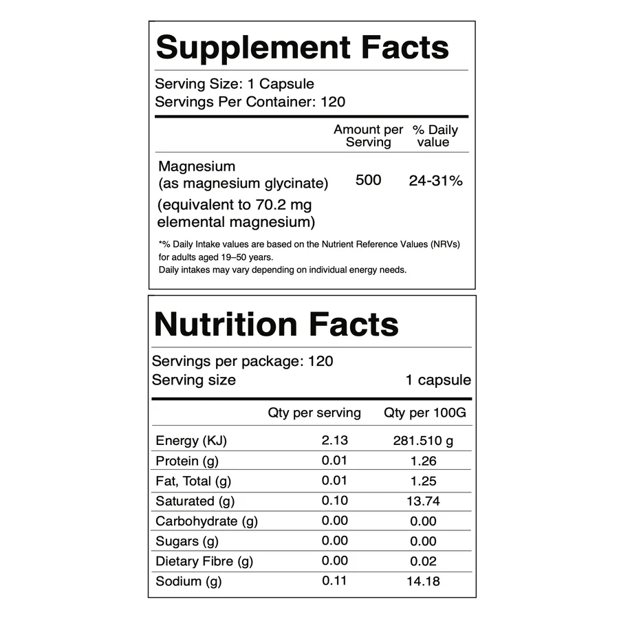 Magnesium Glycinate 120 Capsules | 60 Serves