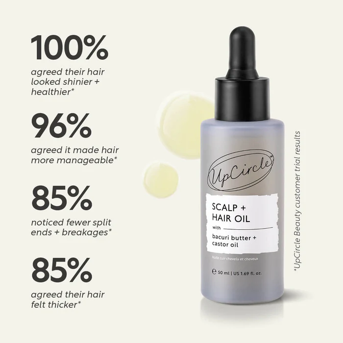 Apply a generous amount of the Scalp + Hair Oil directly onto hair, focusing on the scalp, roots and ends. Gently massage with your fingertips for 2 to 5 minutes to stimulate microcirculation and nourish the scalp. Leave the oil on for a minimum of 20 to 30 minutes, or overnight for an intensive treatment. Wash and style as usual. Use once or twice a week. BONUS TIP: For an extra boost, lightly mist your hair with water before applying the oil. This helps the oil form a protective barrier around each hair strand, locking in moisture and supporting elasticity. This ensures hair stays nourished, resilient, and beautifully soft.
