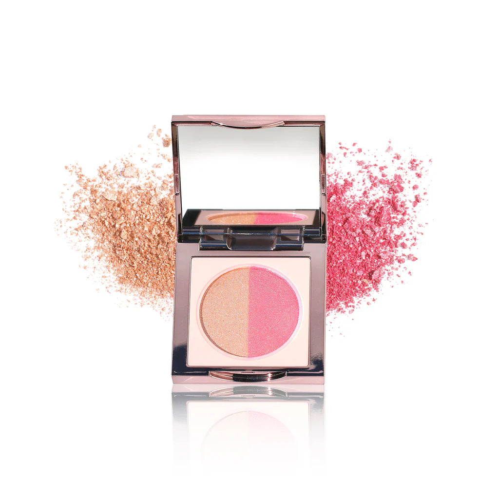 Using a blush brush, apply shades separately, mix ‘em up or customize a balance between the two.